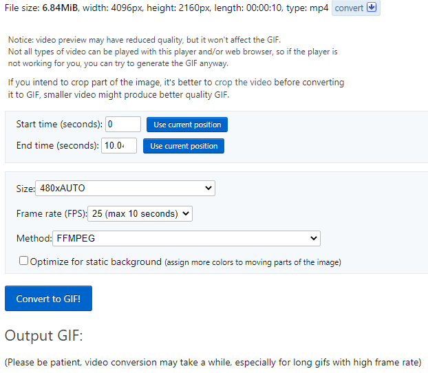 13/07/2017 · video to gif maker can convert all popular video formats to gif such as avi format, wmv format, mpeg format, mov format, mkv format, mp4 format features :. Convert video clip to gif. Select one to finish the gif creation process. Time spent can be longer, but not shorter, than this minimum. 13/07/2017 · video to gif maker can convert all popular video formats to gif such as avi format, wmv format, mpeg format, mov format, mkv format, mp4 format features : Giphy is a great tool for gif making. Select the minimum seconds spent on each slide. The default quality is medium... Editing images may cause irreversible changes.